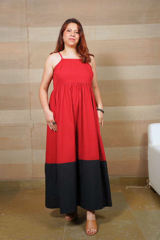 Round Neck Sleeveless Pleated Viva Magenta Dress with Embroidery