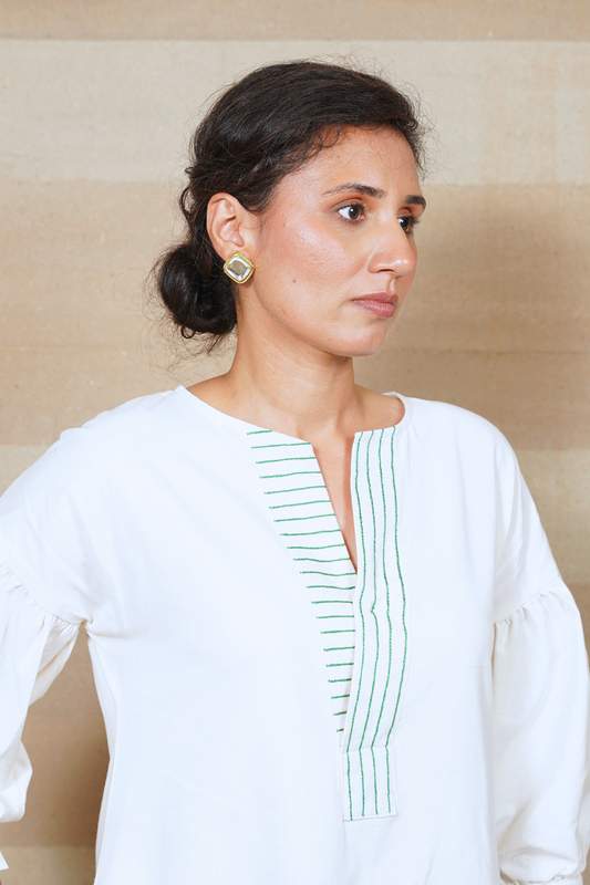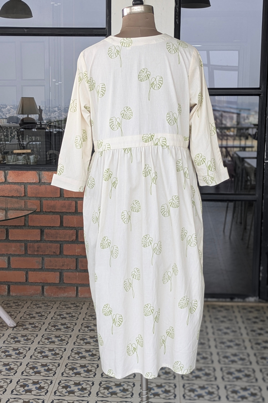Kora and Green Printed Midi Dress with a Triangle Cut on the Sleeve Cuff