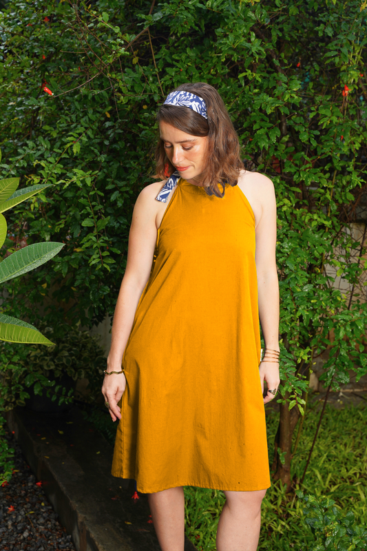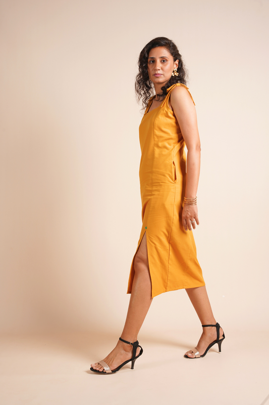 Ochre Yellow Sleeveless Maxi Dress with Embroidery