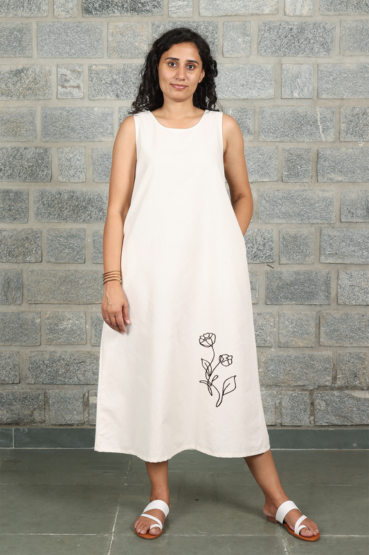 Ochre Yellow Sleeveless Maxi Dress with Embroidery